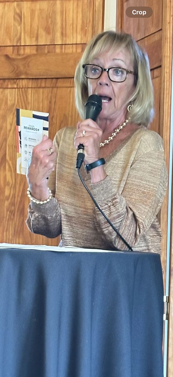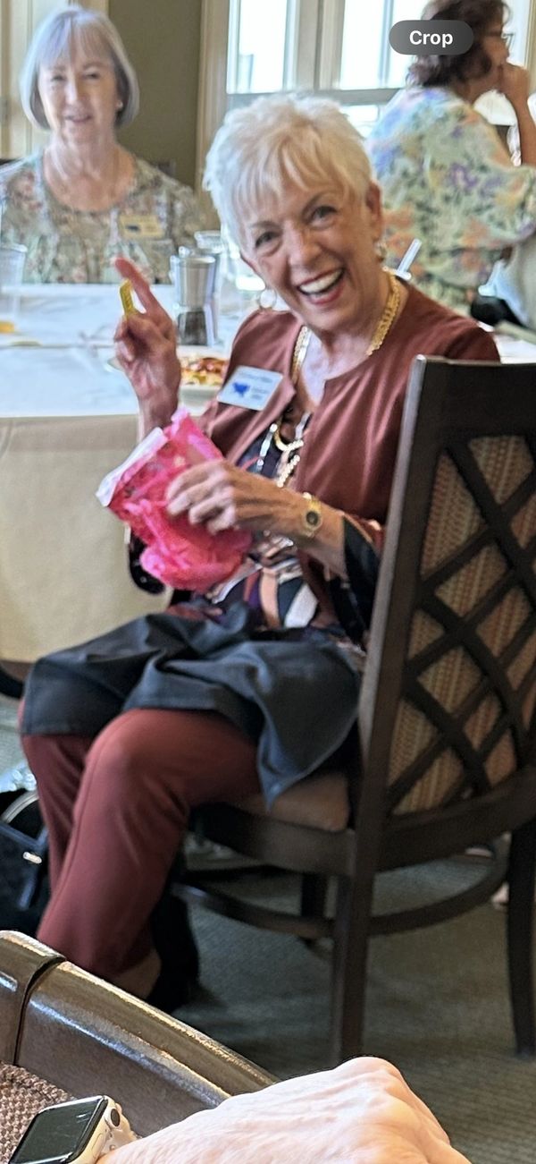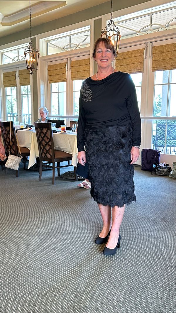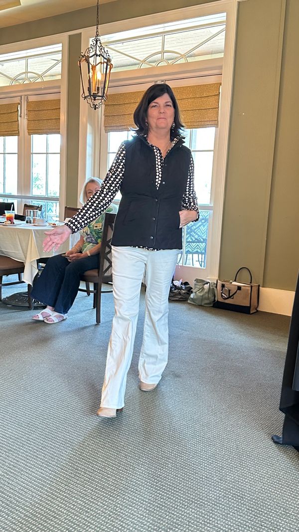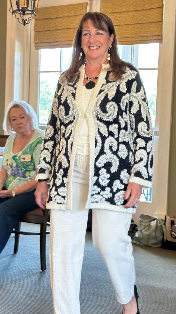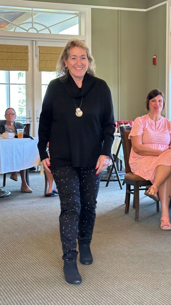 The May luncheon was the site of a fantastic fashion show presented by Twisted Sisters and our own fabulous models, Carolyn Glaza, Tracy Ervin, Claudia Fecho, Carol Newton, and Sherry Vaughan. The show was emceed by Kim Holwell, owner of Twisted Sisters, assisted by Molly McCall and Connie Rodante.